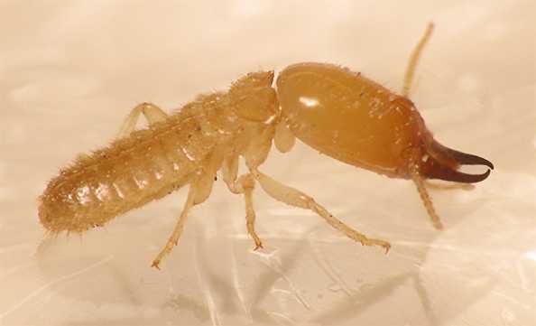 工蚁,有雌雄性,但性器官发育不完善,无生殖能力。头部圆形,无眼,上腭坚硬,宜于咬食,体色较淡,体壁柔软,负责建巢、修路、汲水、采食、搬运蚁卵、喂食和巢内蚁道清洁等工,在群巢中数量最多。