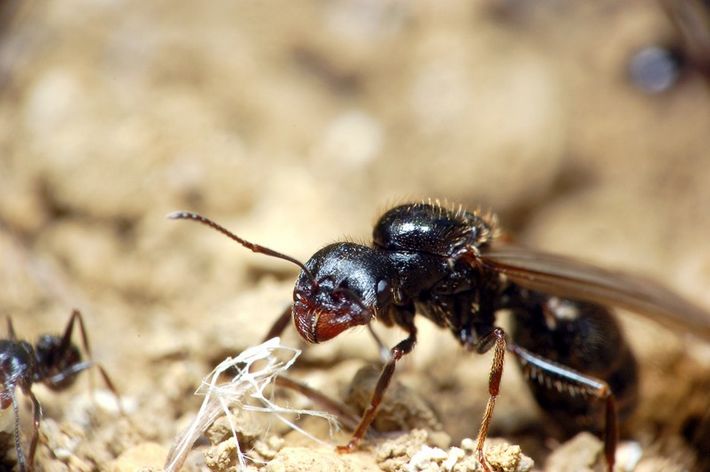 蚁后和蚁王,主要负责繁衍后代,依赖工蚁喂养和照顾。原始蚁后通常能活10 至30年,在成熟期,蚁后体型巨大,特别是腹部。
